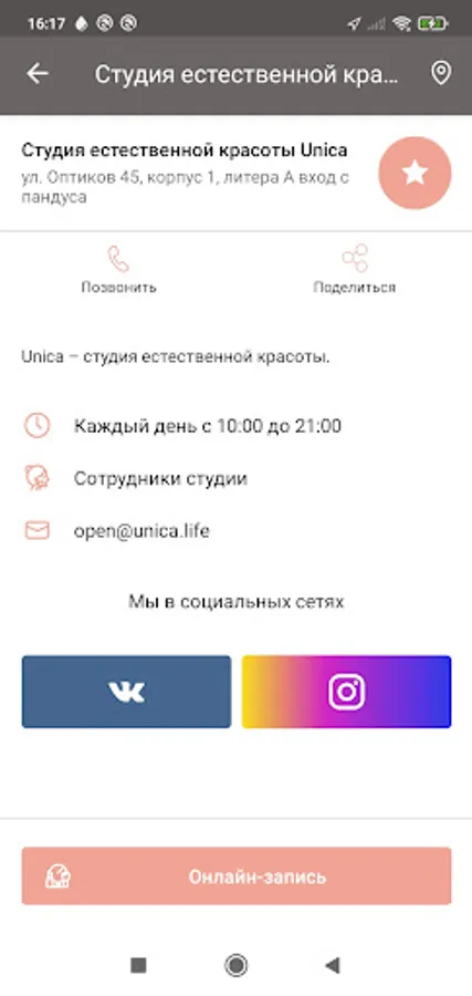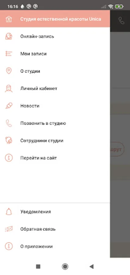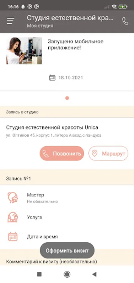 The mobile application of the Natural Beauty Studio Unica will help you sign up for the service online, save, track and use cashback, track the history of visits and purchases, use the studio's special offers