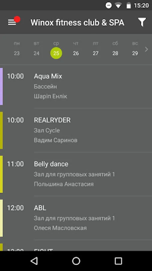 With the app you can follow the news, schedule of clubs, to receive information about changes in the schedule and special offers.