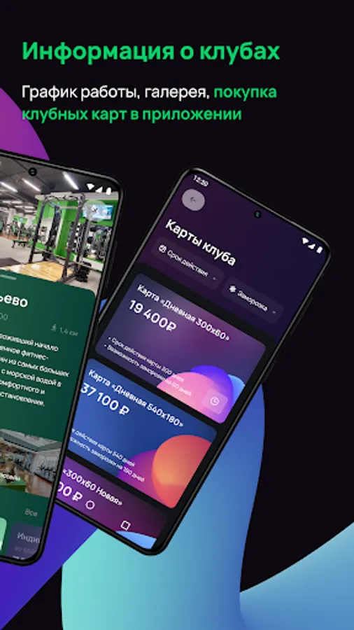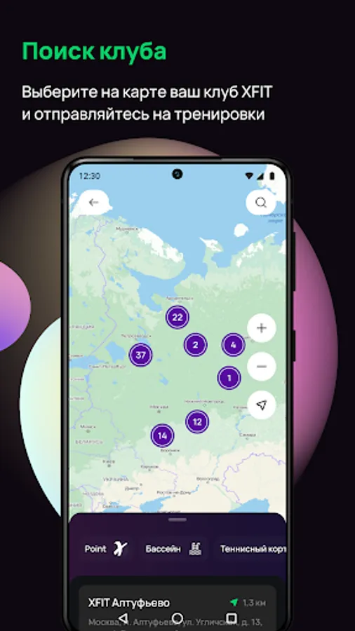 - receive full information about the clubs of the network, including photos and contacts;
