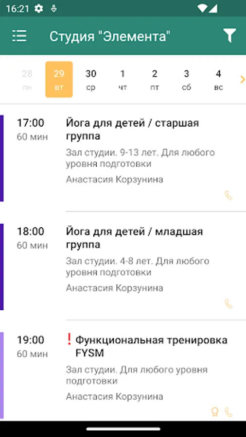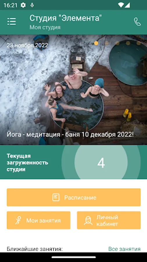 Using the application, you can easily find out the schedule, sign up for a lesson, follow the news, quickly receive information about changes in the schedule and special offers.