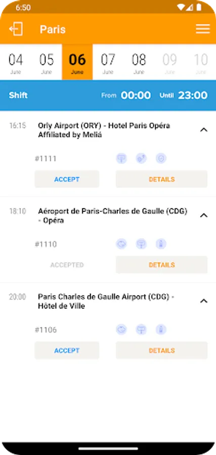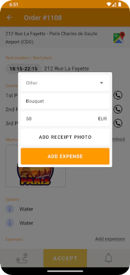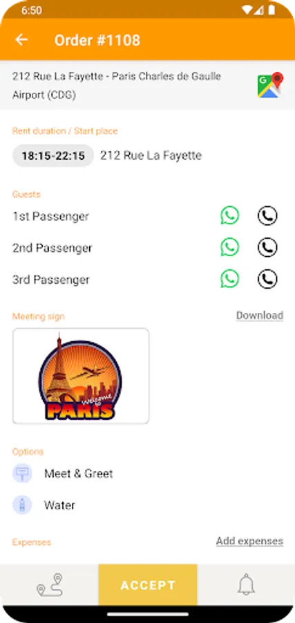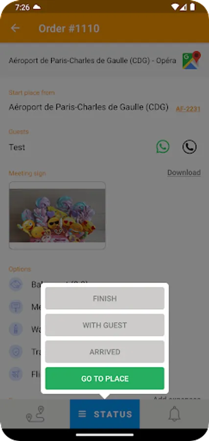 - contact guests (call or WhatsApp) and dispatchers from the app;