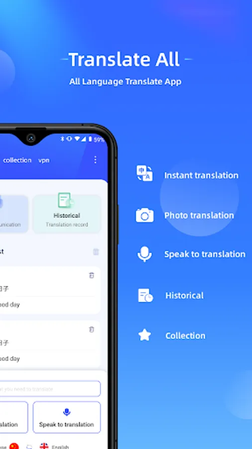 My Translate app is your best choice for translating any type of text, speech, photos, or objects into more than 100+ worldwide languages.