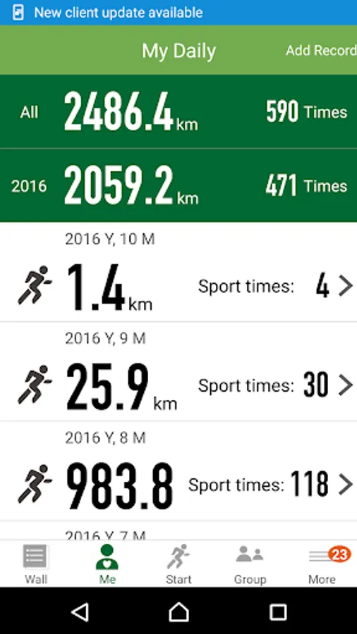 - Personal information including running experience, total distance, cycling distance, annual distance, race schedules and stats.