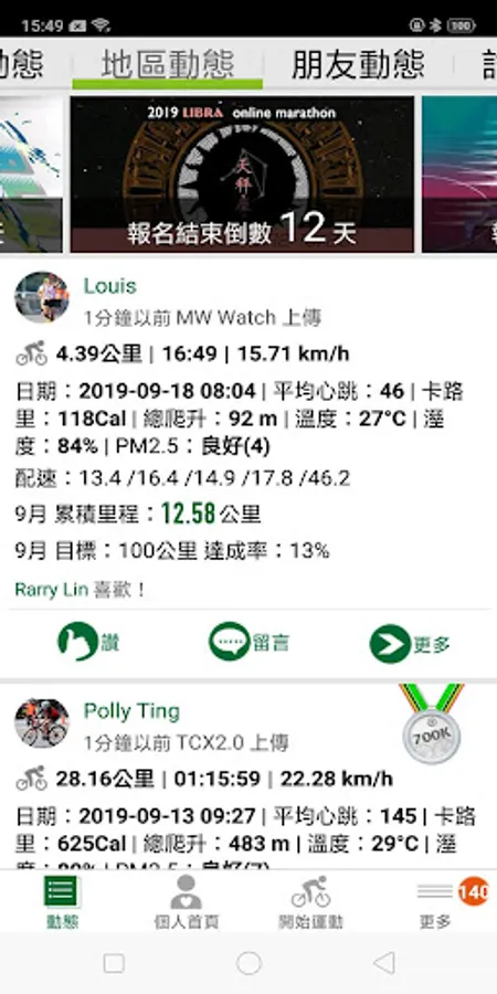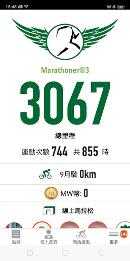 - Personal information including running experience, total distance, cycling distance, annual distance, race schedules and stats.