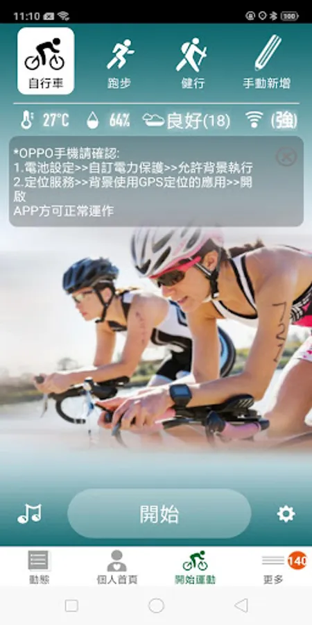 - Choose either running or cycling.