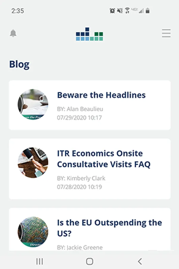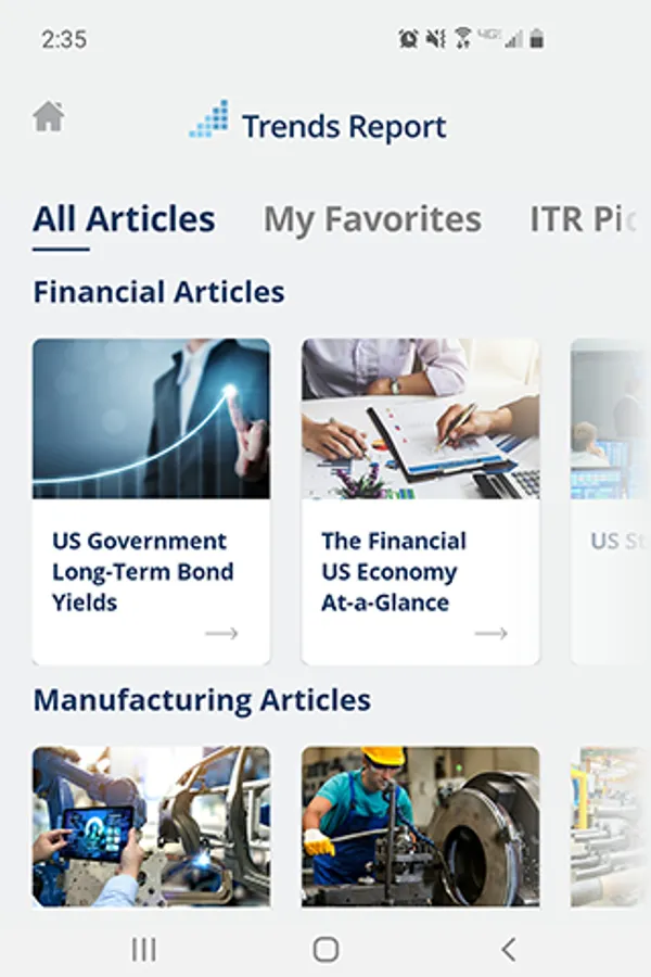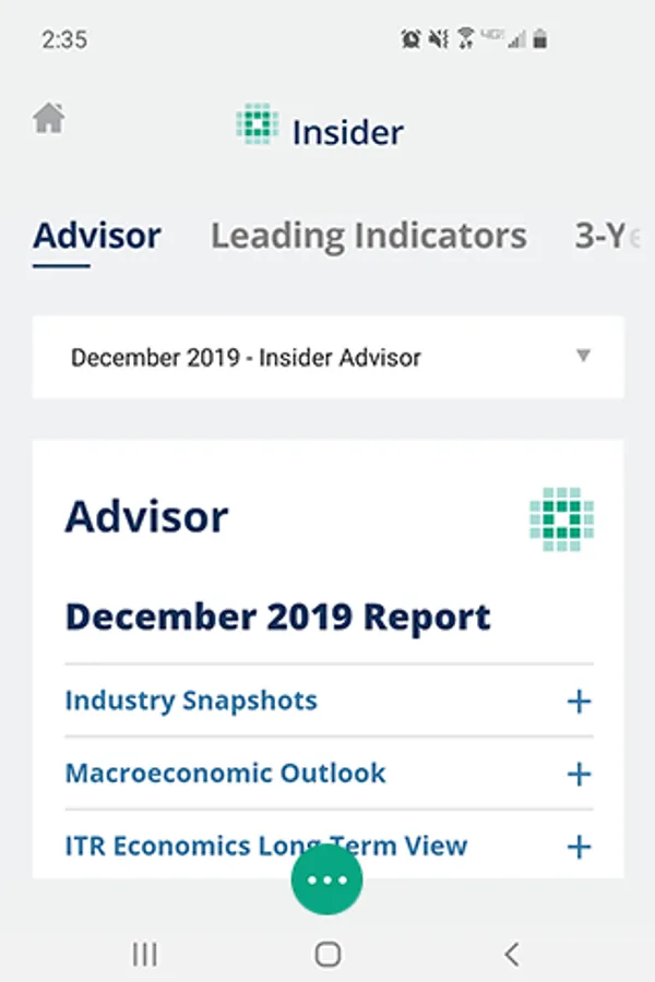 The ITR App helps you stay current with our accurate economic forecasts wherever you may be. Many are using it as a valuable resource during important executive meetings, board meetings, budget planning sessions, and monthly leadership team discussions.