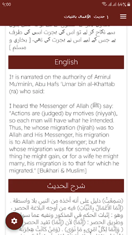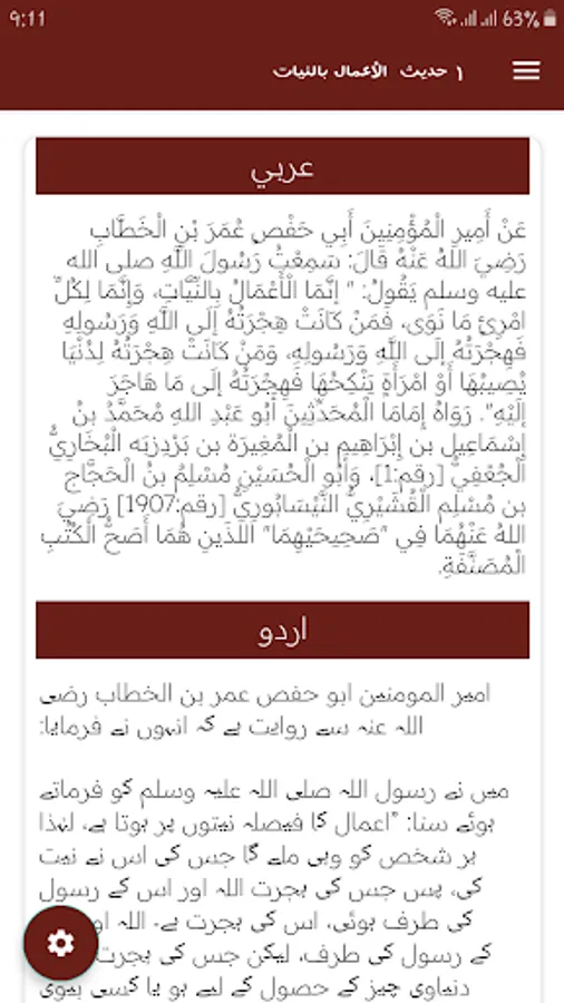 Urdu English and Arabic Hadees Arbein e nawawi.