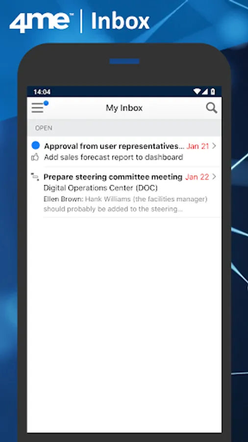 The 4me app makes it easy for enterprise employees to request support, and for support specialists to work on these requests when they are on the go.