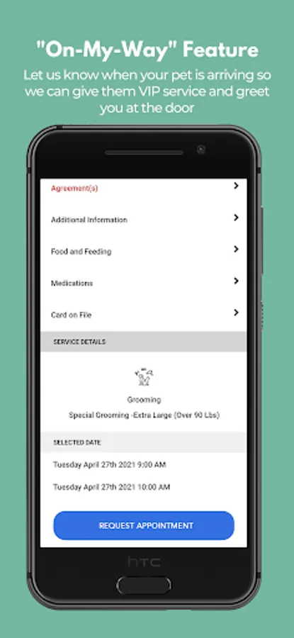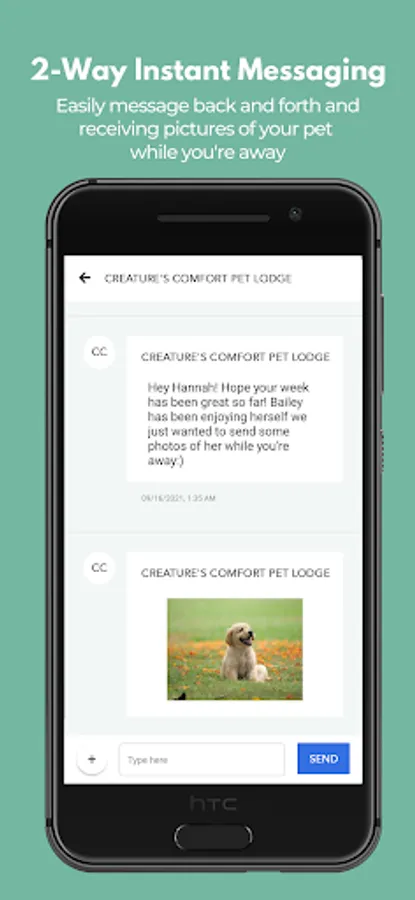 With Creature's Comfort Pet Lodge app, you can request a reservation for your pet, send messages, add special features and amenities, and more!