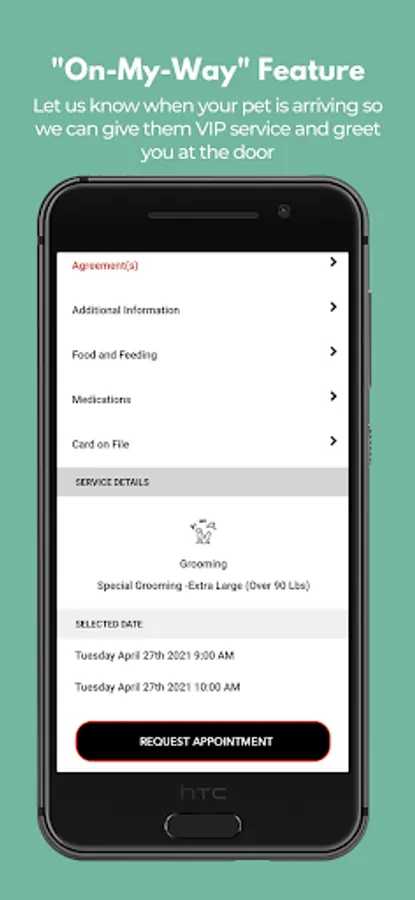 With Dog Dayzzz Daycare app, you can request a reservation for your pet, send messages, add special features and amenities, and more!