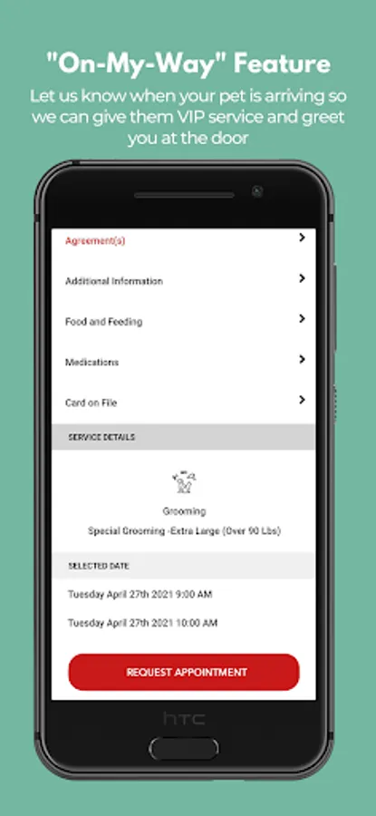 With The Land of Dogz app, you can request a reservation for your pet, send messages, add special features and amenities, and more!