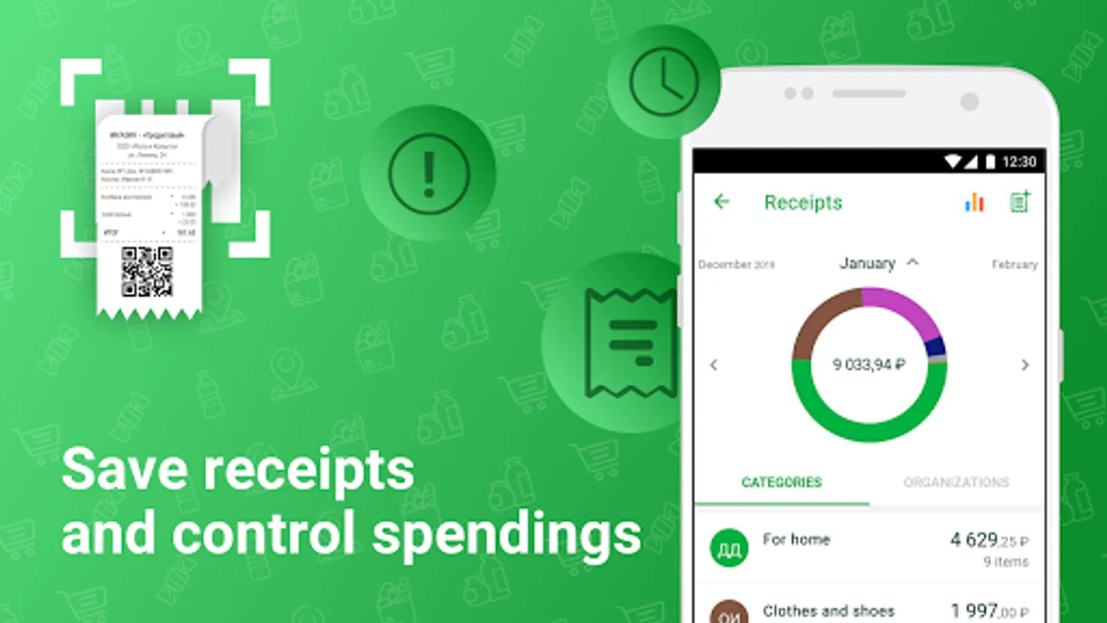 - QR code scanner will help you scan a receipt to keep track of expenses and finances, as well as to see which categories of goods you spend your budget on the most.