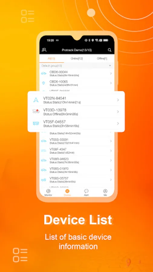 1.View the status, location, wheel path and alert information of all GPS devices under the current account;