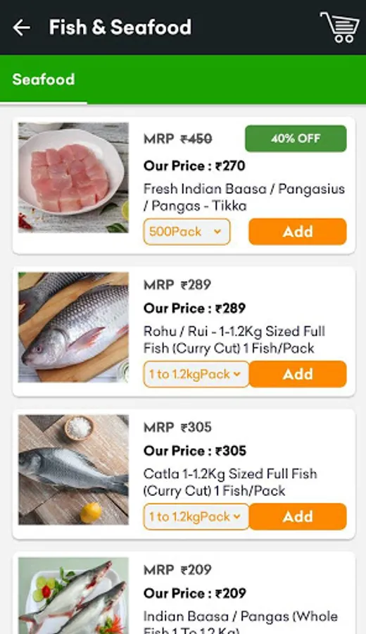 Seafood: Enjoy a whole range of fresh fish like Catla, Rohu, Roopchand, Singhi , prawns, and so much more.