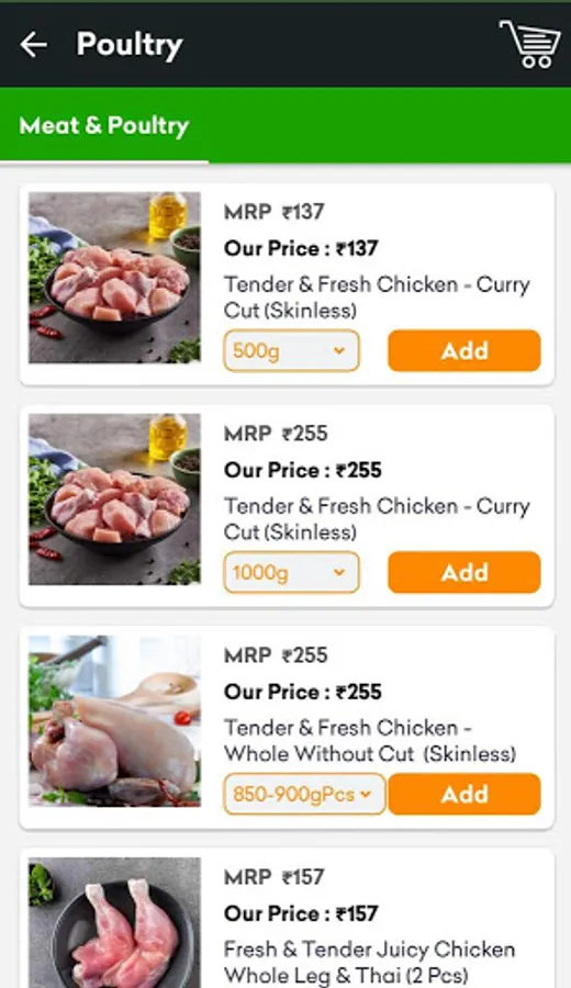 Chicken: Antibiotic free Chicken: Multiple cuts like Chicken curry cut, Chicken biriyani cut, Chicken breast boneless, chicken, Chicken drumstick, chicken thai boneless, kadaknath chicken and so much more.
