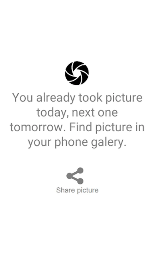 This application is meant exactly for this: it will ring every day at 8 PM and let you to take 1 picture of anything you want in that moment. Pictures are saved in the separate directory ITS8PM so that you can easily find and manage them. Share photos daily on facebook or email directly from application with single click.