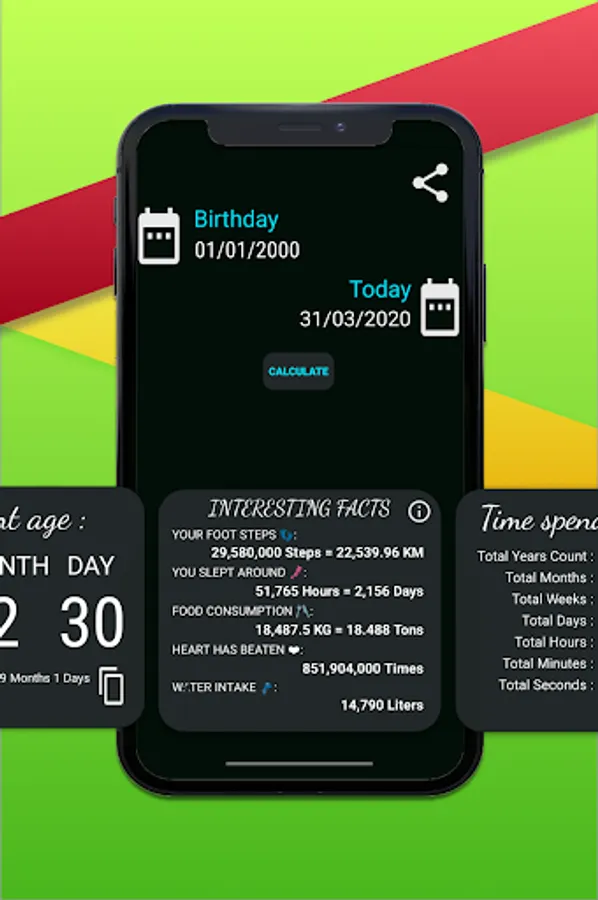 The calendar can be accessed by clicking the calendar icon for selecting a birth date and today’s date then clicking on calculate will show the age in year month days