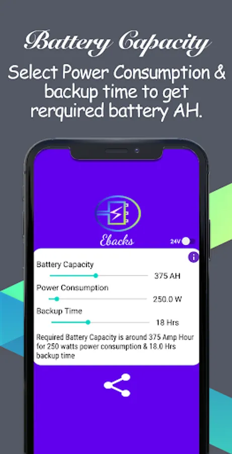 Ebacks is developed to help calculate the battery backup time & required battery capacity easily.