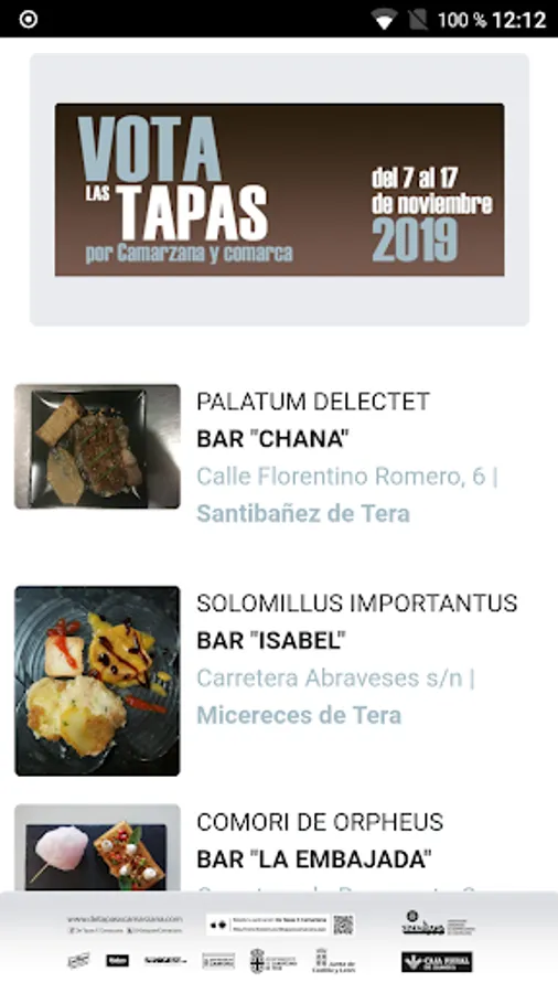 Application of the Camarzana Tapas Festival that is held in Camarzana and region between November 7 and 17, 2019.