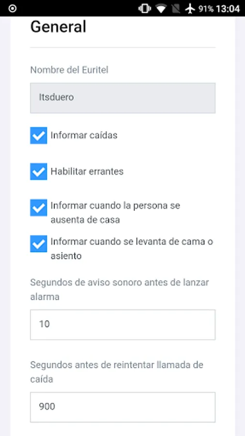 App for the configuration of EURITEL devices for the surveillance and monitoring of dependent persons.