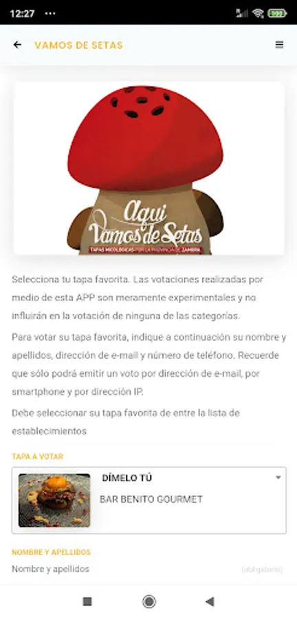 VAMOS de SETAS is an Android APP developed by ITS Duero for the route of Mycological Tapas through the Province of Zamora.
