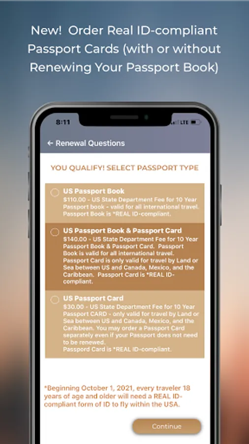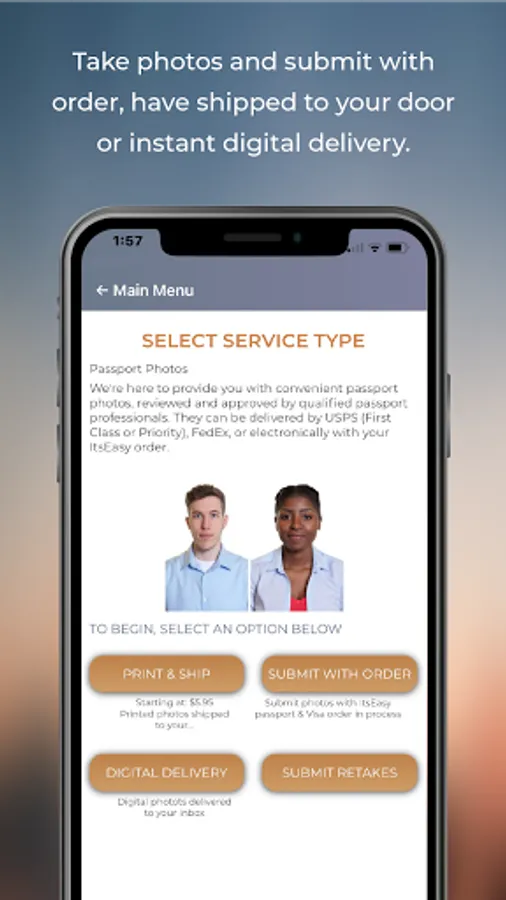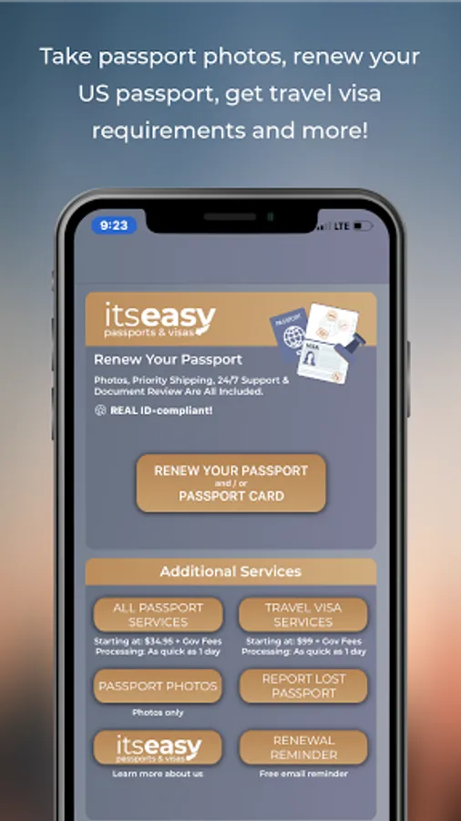 The ItsEasy Passport Renewal & Photo App is the safest way to renew your US Passport, obtain a Real ID-compatible US Passport Card, or get either electronic or printed 2" x 2" passport photos for any application.
