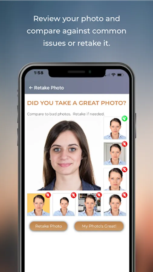 Passport Photos - 2" x 2" photos that can be used for passports, visas, state exams, licensing applications and more. Simply take a photo using your iPhone/iPad and choose the delivery option that suits you. We offer the ability to upload your photo with your passport and/or visa order, print and ship anywhere in the US or its territories or for the do-it-yourselfers, we offer instant digital delivery via email. Our qualified photo reviewers personally review each photo by hand - if there are any issues with your photo we-ll let you know why and how to retake them.