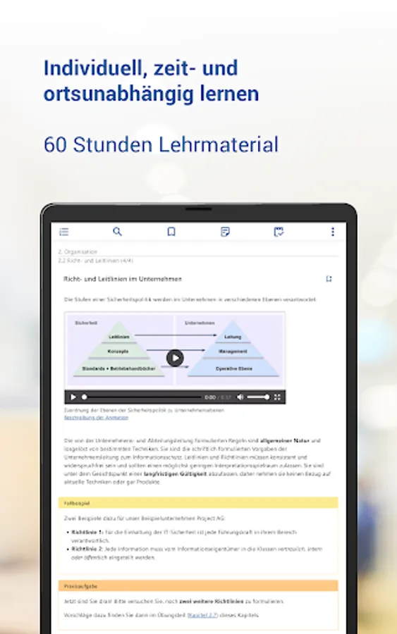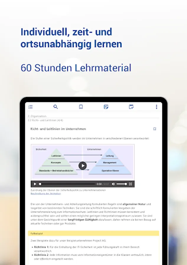 The course provides a step-by-step introduction to the topic of IT security, with detailed explanations and comprehensible examples. It is therefore possible to get started with little previous knowledge and experience in the field of IT security.