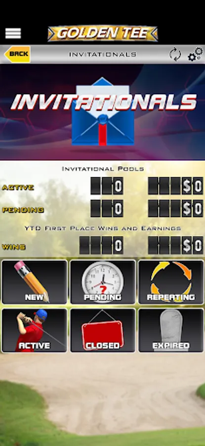 • The Invitationals section allows you to setup private contests with just your friends. Once you create your contest, you can play your game at any Golden Tee cabinet in states that do not have restrictions. All players have the same game conditions no matter which physical location they play at.