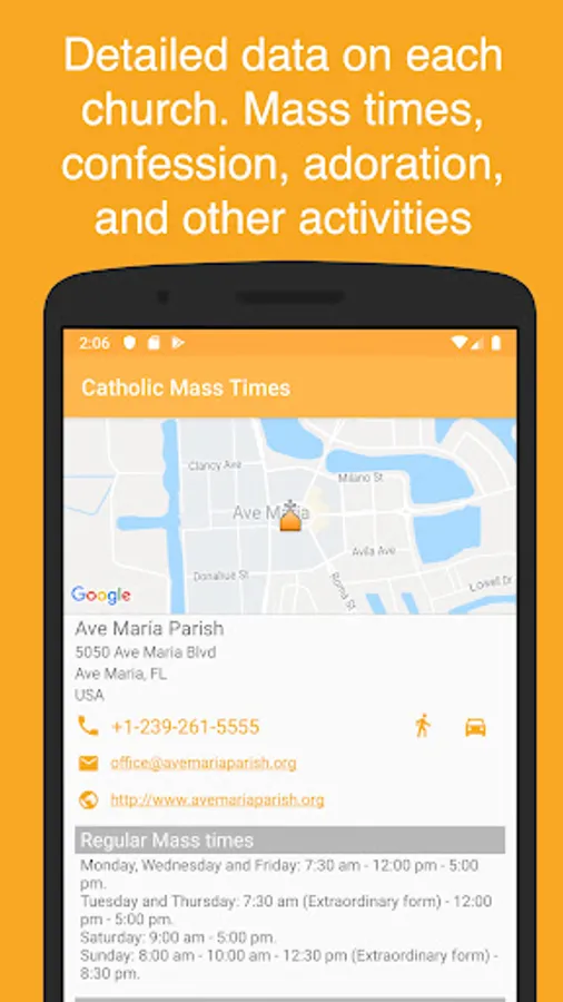 This application allows you to instantly locate all nearby Catholic churches around your current location and see the most relevant information about each one, including its Mass schedules, reconciliation schedules, telephone, email, website, and address (with directions).