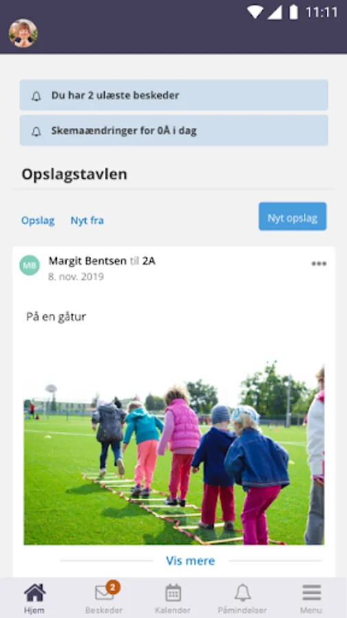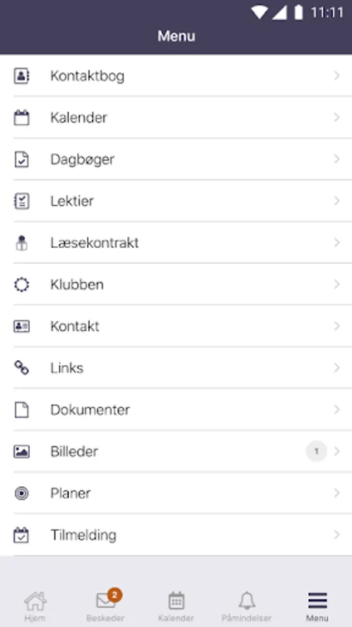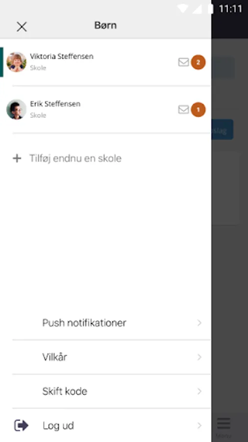 By clicking on the upper left corner you get to the menu for the app, and this is also where you will be able to switch between your children.