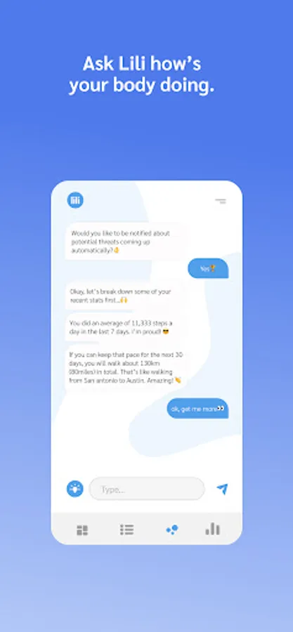 Lili is an AI assistant who sits on top of your Fitbit account and helps you improve your health through advanced data analytics.