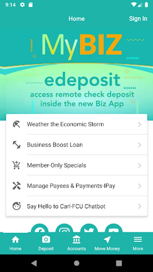 Frankenmuth Credit Union Biz Mobile provides business members convenient access to our website, business mobile banking, branch and contact information.