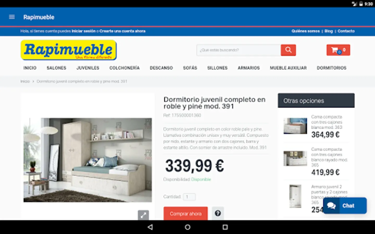 Official and free application of Rapimueble, the on-line store of the largest national furniture and leisure chain. Discover our catalog of furniture and home decoration: living room, youth, mattresses, sofas, dining room, auxiliary, bedrooms, etc.