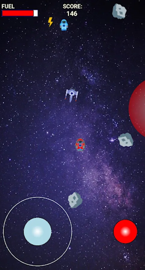 - Fuel-based gameplay: Your ship has a limited amount of fuel so use it wisely! Keeping a balance between using fuel and collecting more of it is the key to success!