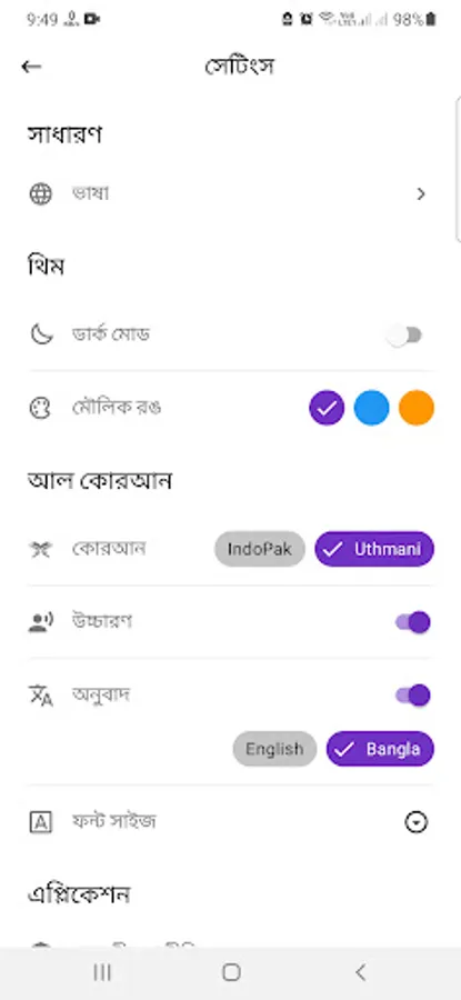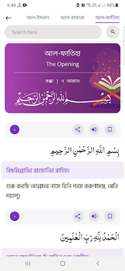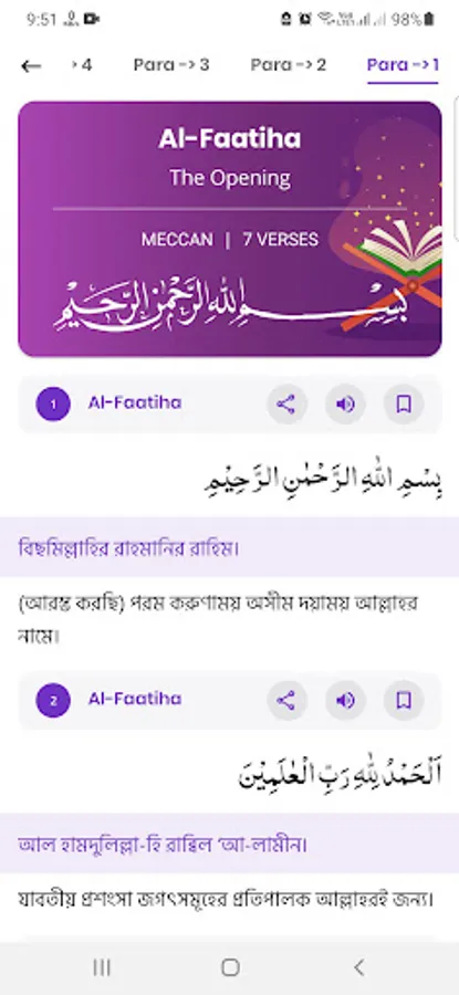 ▪︎Al-Quran in Arabic, Bengali & English translation.