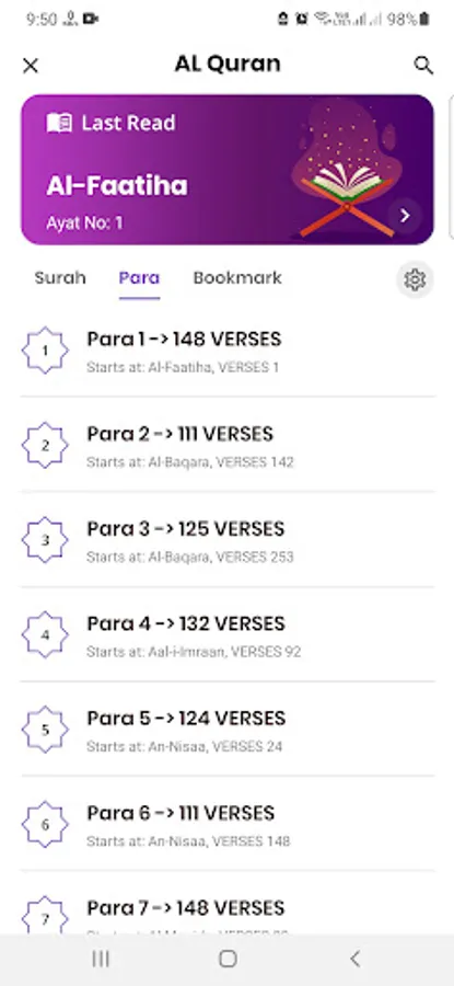 ▪︎User friendly design, slide the screen to move Surah or Juz.