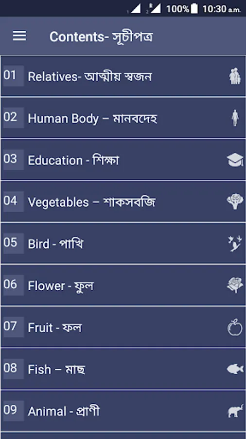 This app is very helpful for new student who want to learn English. In this Word Book you can learn many types of word from different topic. This word book also helps kids to learn simple words. Here is the all topic....