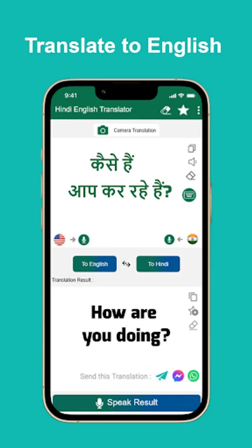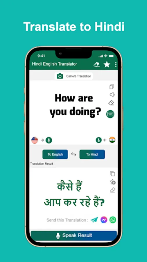 Hindi - English translator is an application that help you lookup dictionary and translate words and sentences from Hindi to English, or translate English to Hindi too. This translator is free and you are able to translate words or sentences quickly, conveniently and easily.