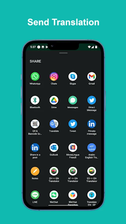 - share translations with your friends and contacts