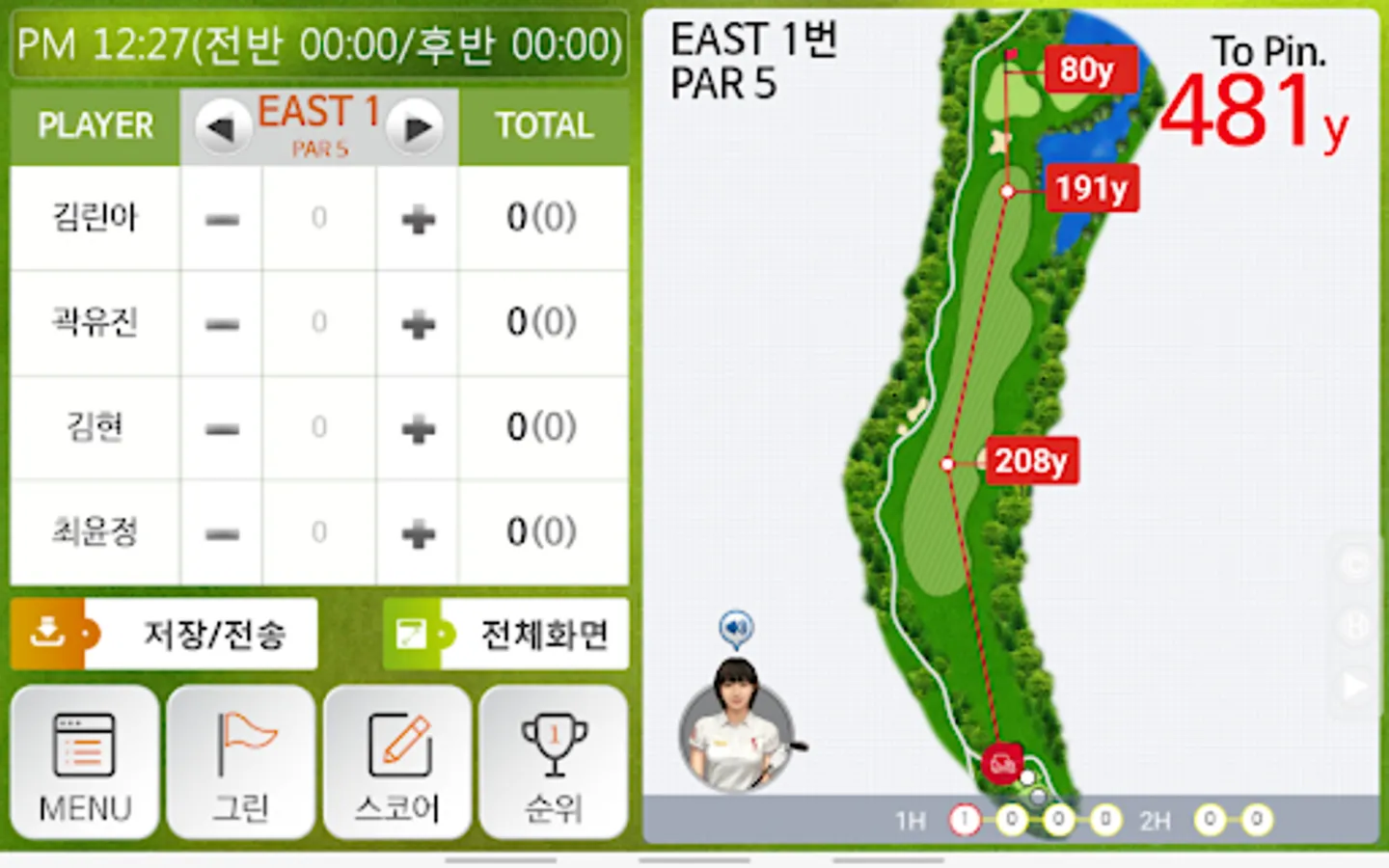 You can grasp the distance information of the hole in real time, register scorecard, check leaderboard, and send message