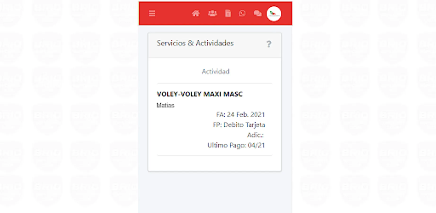 9 - Visualización de los servicios contratados con el club ( Deportes - Lockers - Amarras - Ganchos - etc )