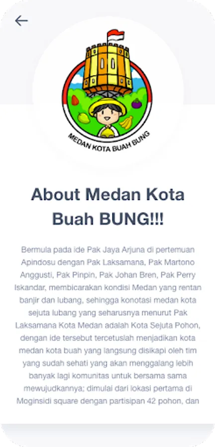 It is an app which helps user tracks the planted fruit trees. Most if not all plants are donated by registered planters. Official information of this app/project can be queried via www.martonomily.com website.