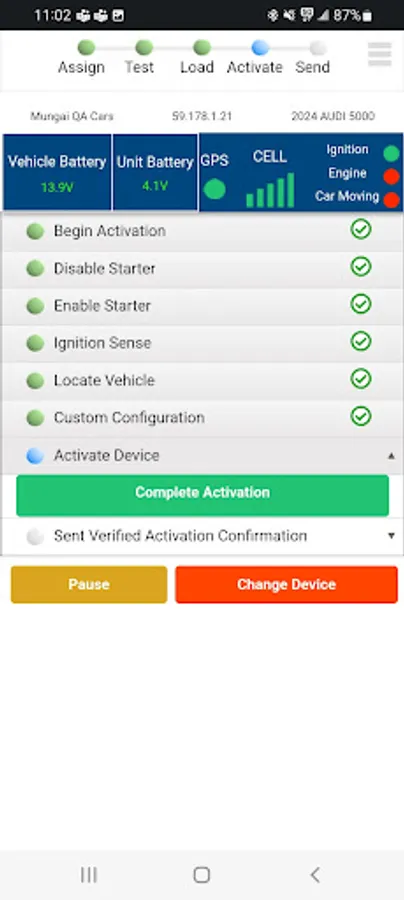 Then activate to post the unit into the account to be seen in the clients online web account to track the vehicle.