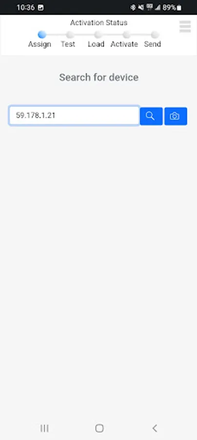 The camera icon on the unit and vehicle screens allow you to take a picture of the barcode of the unit which will fill in the IP address instead of typing int.