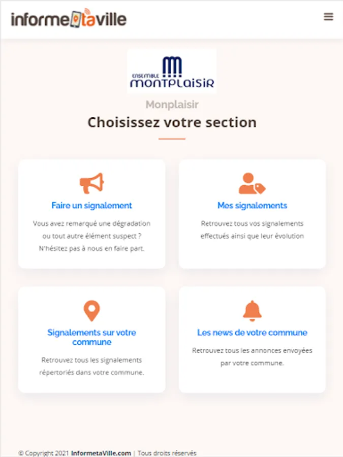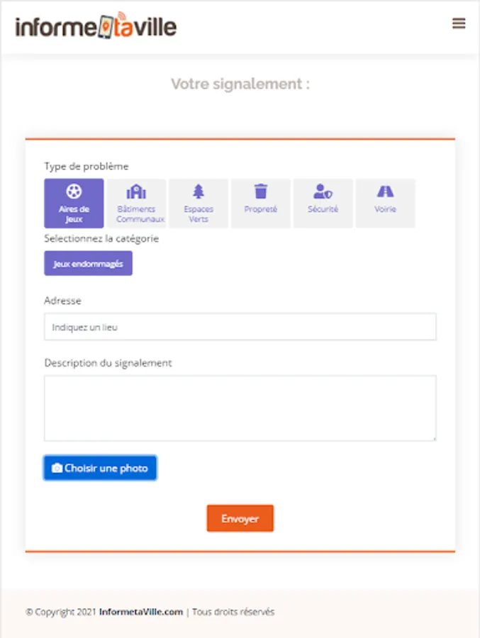 Inform your city is a reporting application allowing you to report any problems related to the public domain to your municipality.