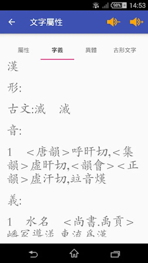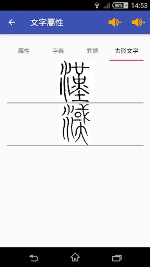 - 從許慎《說文解字》中抽取11,113個古文字形以供查閱。
