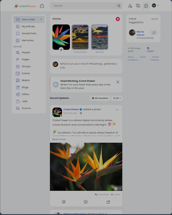 🌺 Why “Crane Flower”?: The name symbolizes elegance, resilience, and the beauty of free expression. Just as the bird of paradise blooms freely, so do our ideas and opinions.