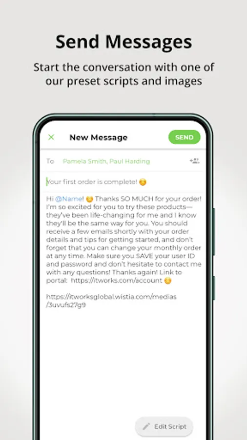 • Send mass messages through Facebook, SMS, Whatsapp & Email!