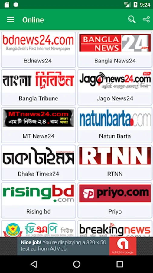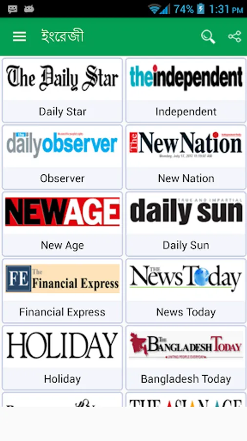 This app is helpfull for people reading newspaper. Both bangla and english newspapers are available. Newspaper list in the section My favourite can be sorting according to user's most visited. If user has not enough facilities for internet connection the can save offline at the time of reading newspaper. When internet connection will not be available then that newspaper will be possible to read.
